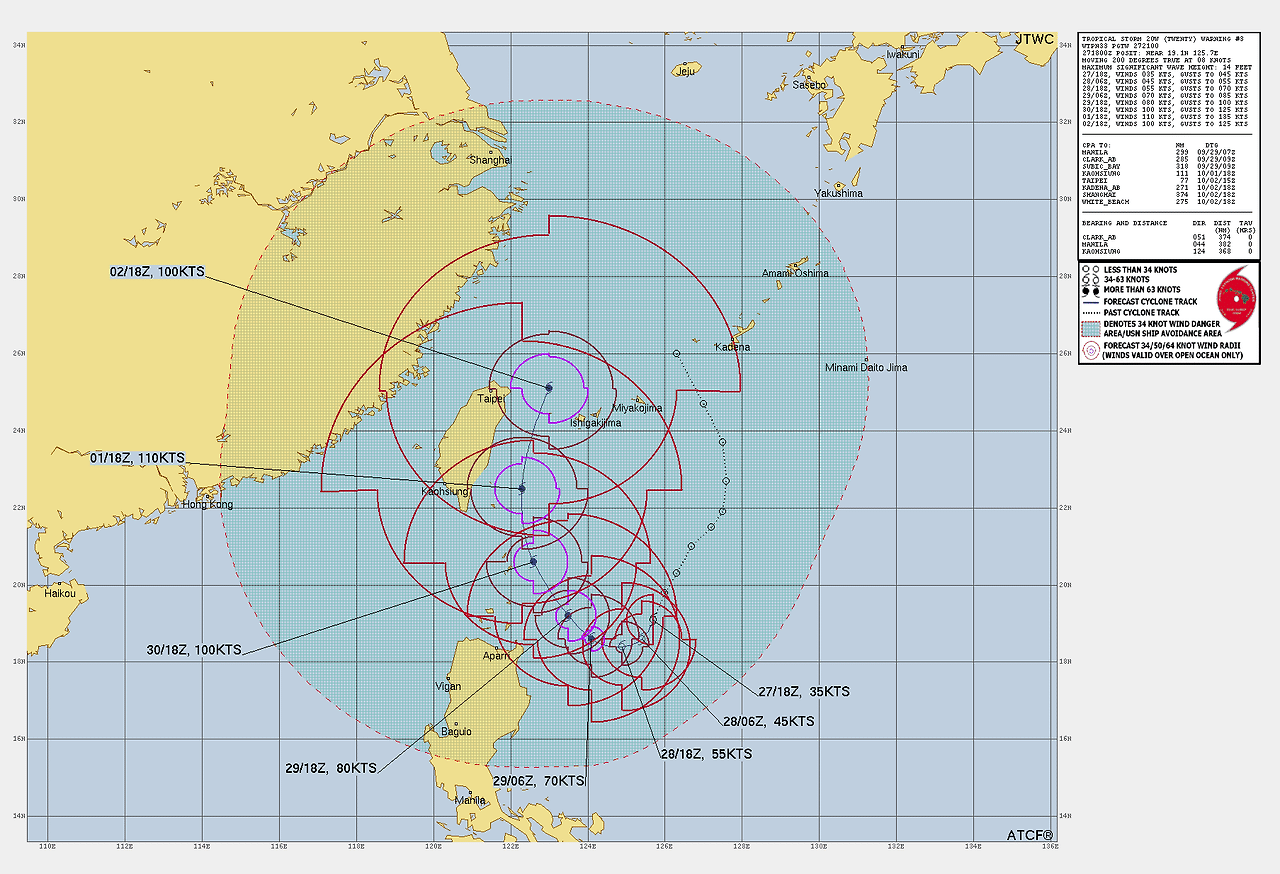 기상청은 태풍 끄라톤이 10월 1일에는 '강' 강도로 성장할 것이라고 예측하고 있어요. 이 시점에서 태풍은 타이완 타이베이 동북쪽 약 260㎞ 인근까지 북상할 것으로 보이는데요, 이때의 바람 속도는 매우 강할 것으로 예상되고 있어요.