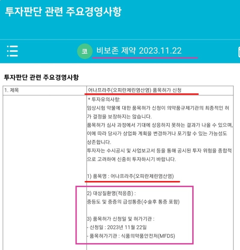 비보존제약은 최근 비마약성 진통제인 어나프라주(성분명: 오피란제린)의 품목허가를 획득했다고 발표했어요. 이로 인해 어나프라주는 국내에서 정식으로 사용될 수 있는 길이 열렸습니다.